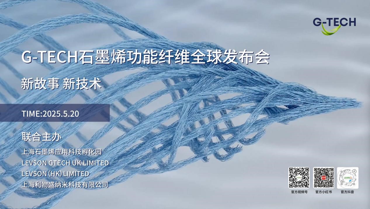 由上海石墨烯应用科技孵化园、LEVSON GTECH UK LIMITED、LEVSON(HK)LIMITED和上海利物盛纳米科技有限公司联合主办的G-TECH品牌石墨烯功能纤维发布会,产品将在纺织大市场(微信小程序),1688阿里巴巴上海利物盛纳米科技有限公司专营店等平台同步发布,现场精彩花絮将在利物盛抖音、小红书、微信视频号三平台同步上线,邀您共鉴石墨烯材料如何赋能未来生活!